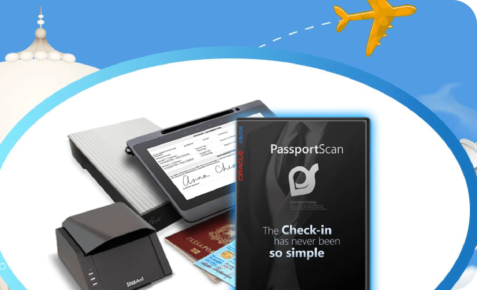 PassportScan increases operational performance at the Front Desk. Optical Character Recognition Technology reads data contained in ID documents within seconds. Ready for immediate exporting to your Property Management System or Interface with Micros Fidelio, Opera, Protel, Sihot etc. Using exclusive OCR (Optical character recognition) the guest's passport or ID card is recognized and the image is scanned. The guest reservation information combines with ID information, to create a digital registration card. This can be reviewed and the guest signs on a signature tablet. With DFF (Dynamic form fill) or dynamic exporting (CSV, TXT, and XML) all the necessary data is transferred directly to the guest PMS profile.